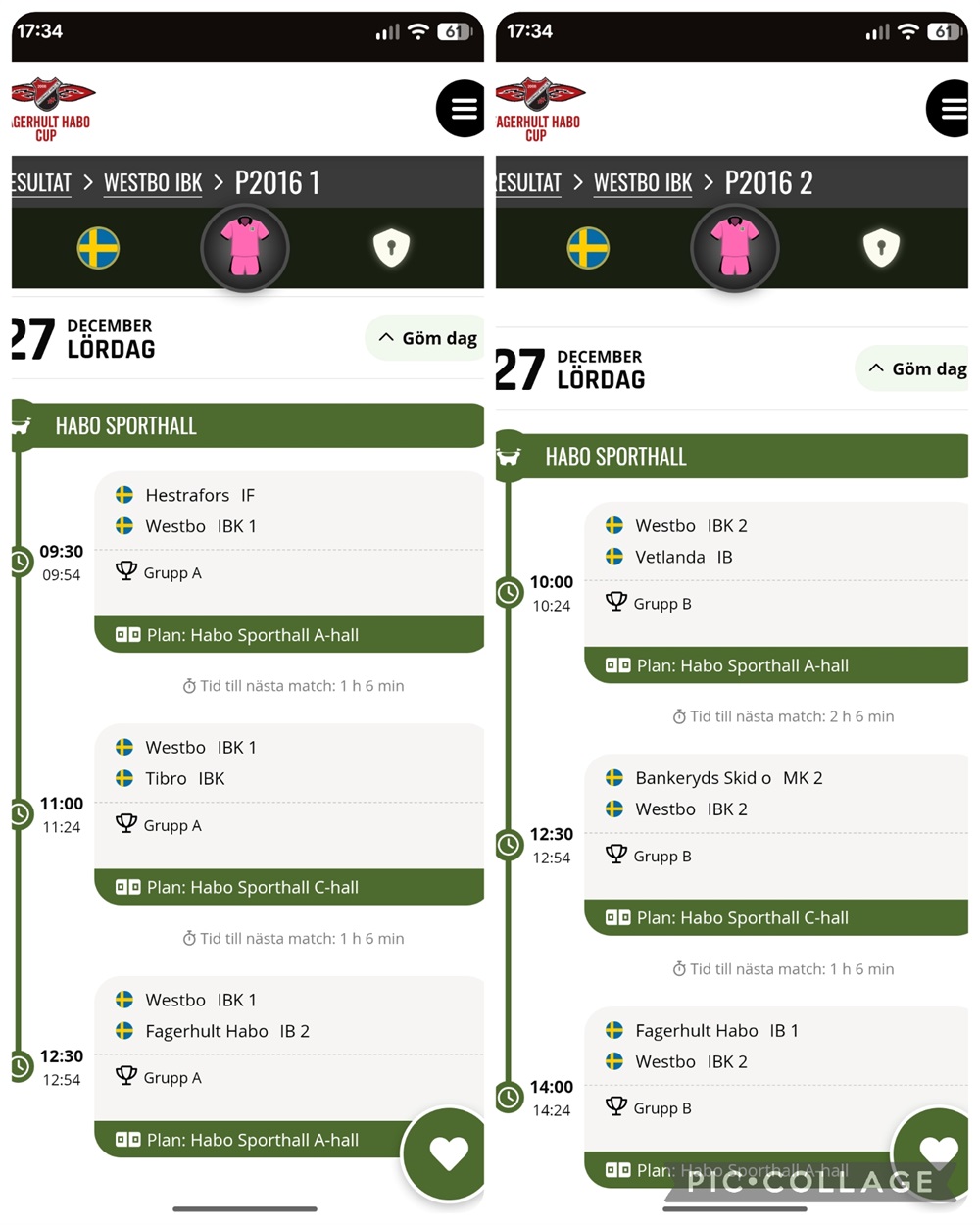 Jag ser gärna att alla försöker vara på plats en timme innan första matchstart för att hinna byta om och värma upp innan matchstart. 😊